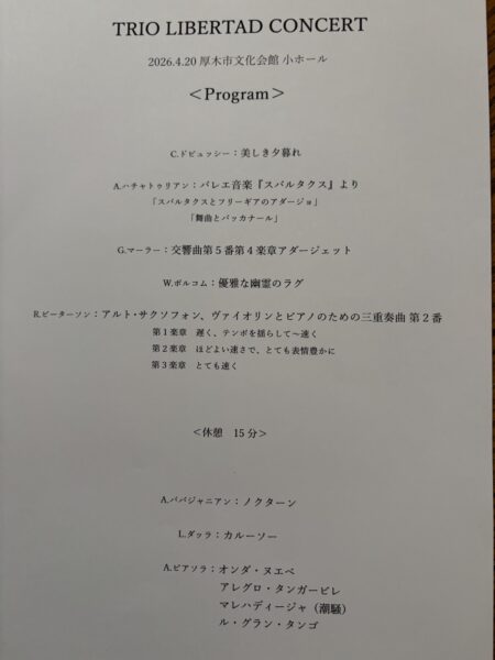 トリオ,リベルタと言うメンバーでのコンサートです。